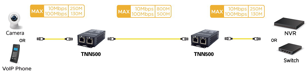 通过一根普通网线把网络信号(RJ45)分别延长500米(100M)和800米(10M)