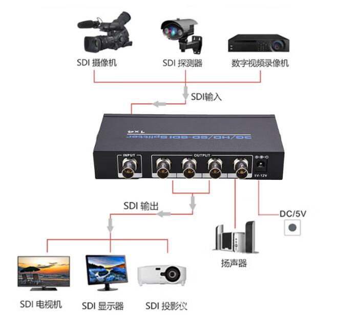 可将1路SDI信号分配成4路SDI信号输出。